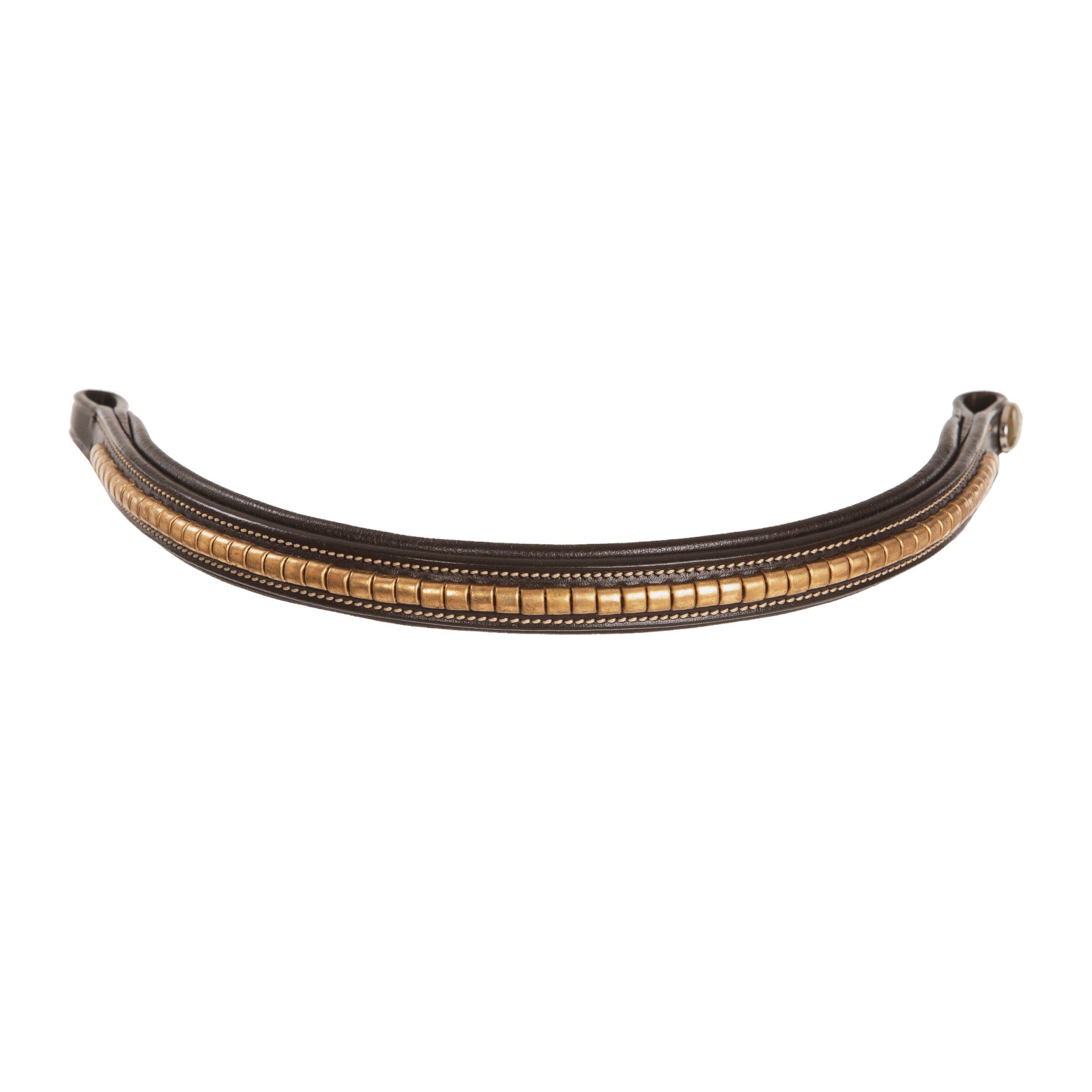 Rakt mjukt fodrat pannband i amerikanskt kvalitetsläder. Dekorerat med klinker i äkta mässing/Silverfärgad klinker. Storlek cob, full, x-full