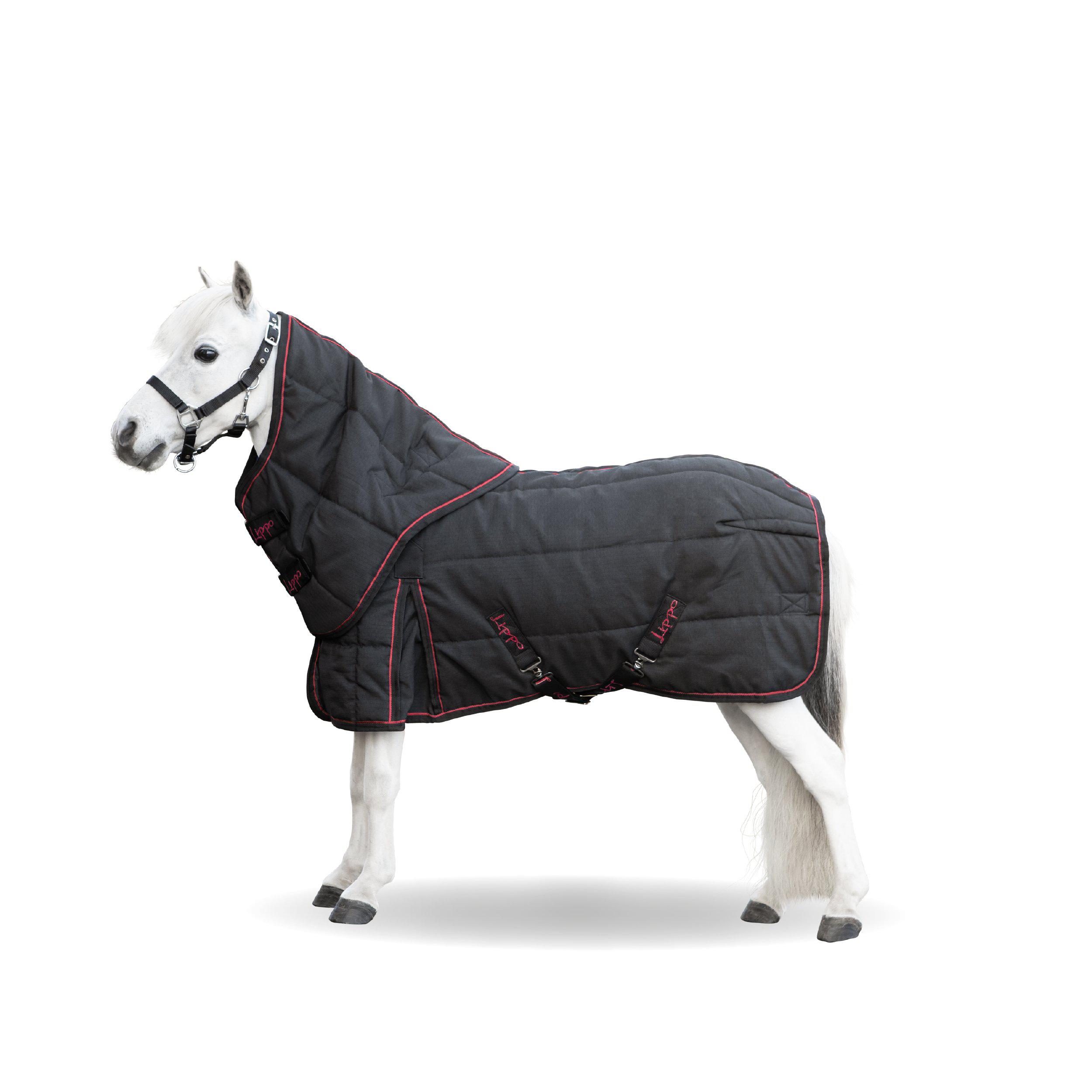 Quiltat stalltäcke i 600D med ripstop med avtagbart halstäcke. Enkelt bogspänne med kardborre. Kryssgjordar, bogveck, avtagbar svansrem och fäste för bensnören. Nylonfoder med polyesterfyllning.
