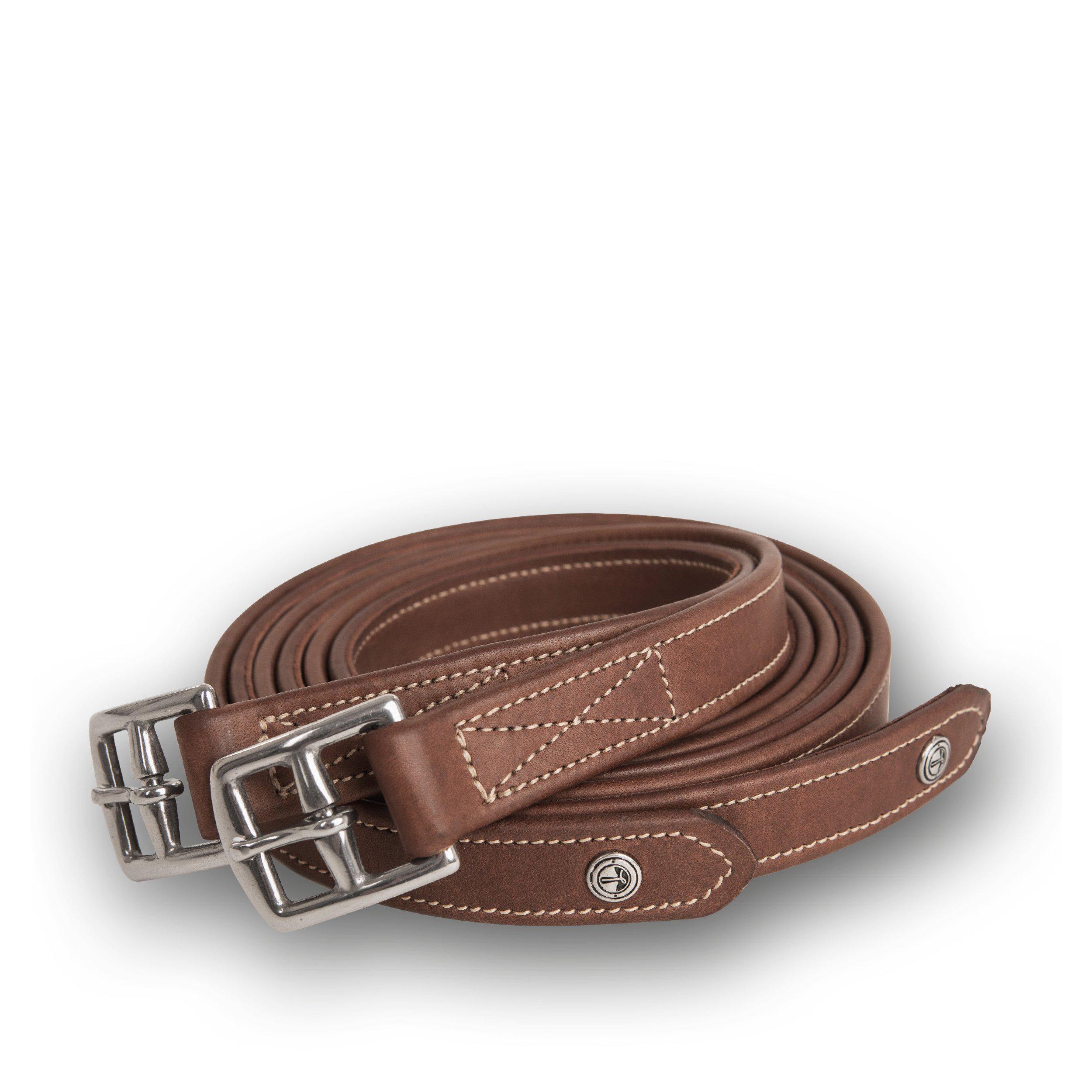 Exklusiva stigläder tillverkade i högkvalitativt noga utvalt Europeiskt läder. Produkterna präglas av ett omsorgsfullt och välgjort läderhantverk av högsta kvalitet. Dubbelsydda i mjukt kalvskinn med nylonkärna. Spännet har en böjd form vilket gör det bekvämare för insidan av låret.