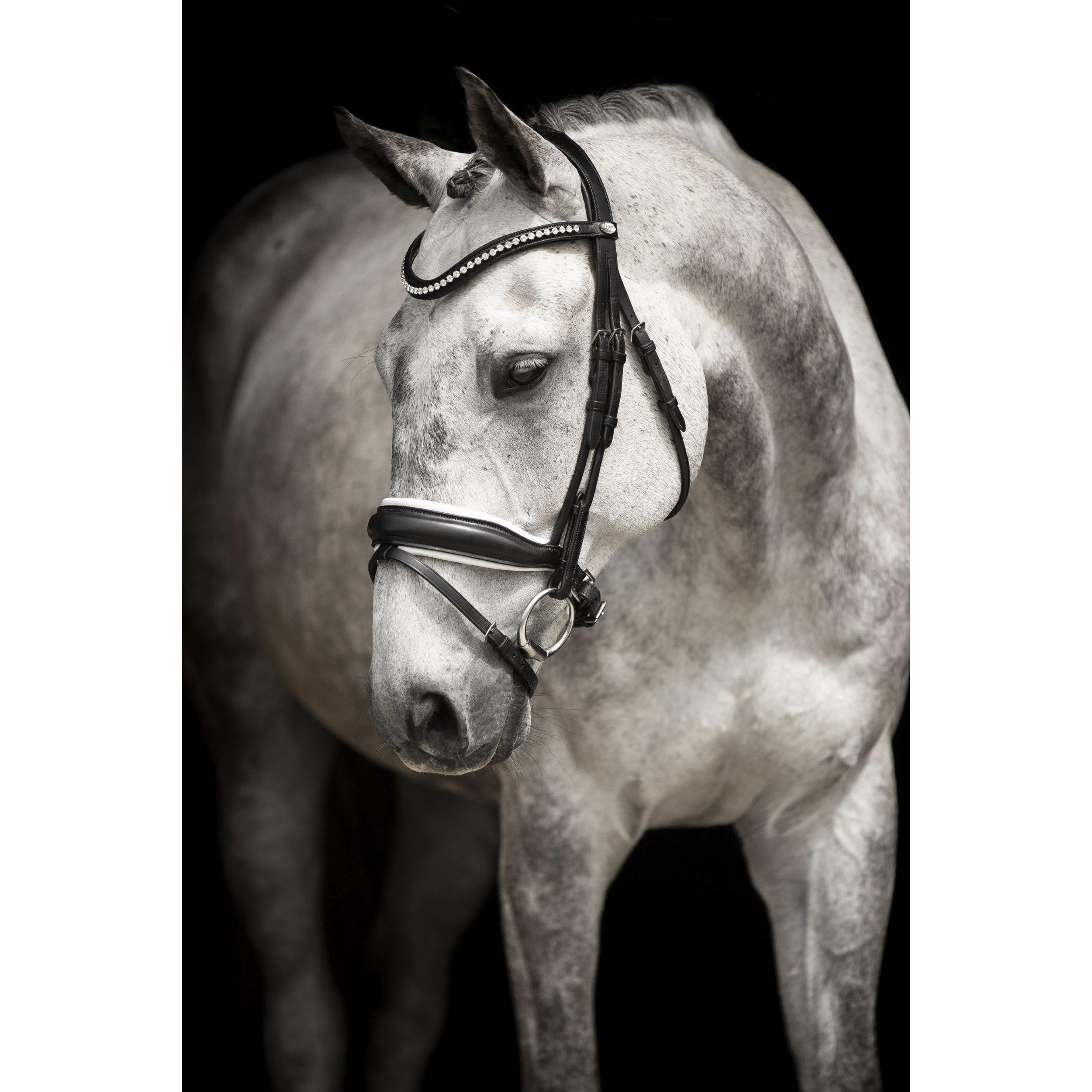 Lyxigt rundsytt träns tillverkat i förstklassigt amerikanskt läder. Anatomisk mjukt fodrad nosgrimma och nackstycke. Levereras med två svängda pannband, ett med stenar och ett i slätt läder. Rostfria söljor.