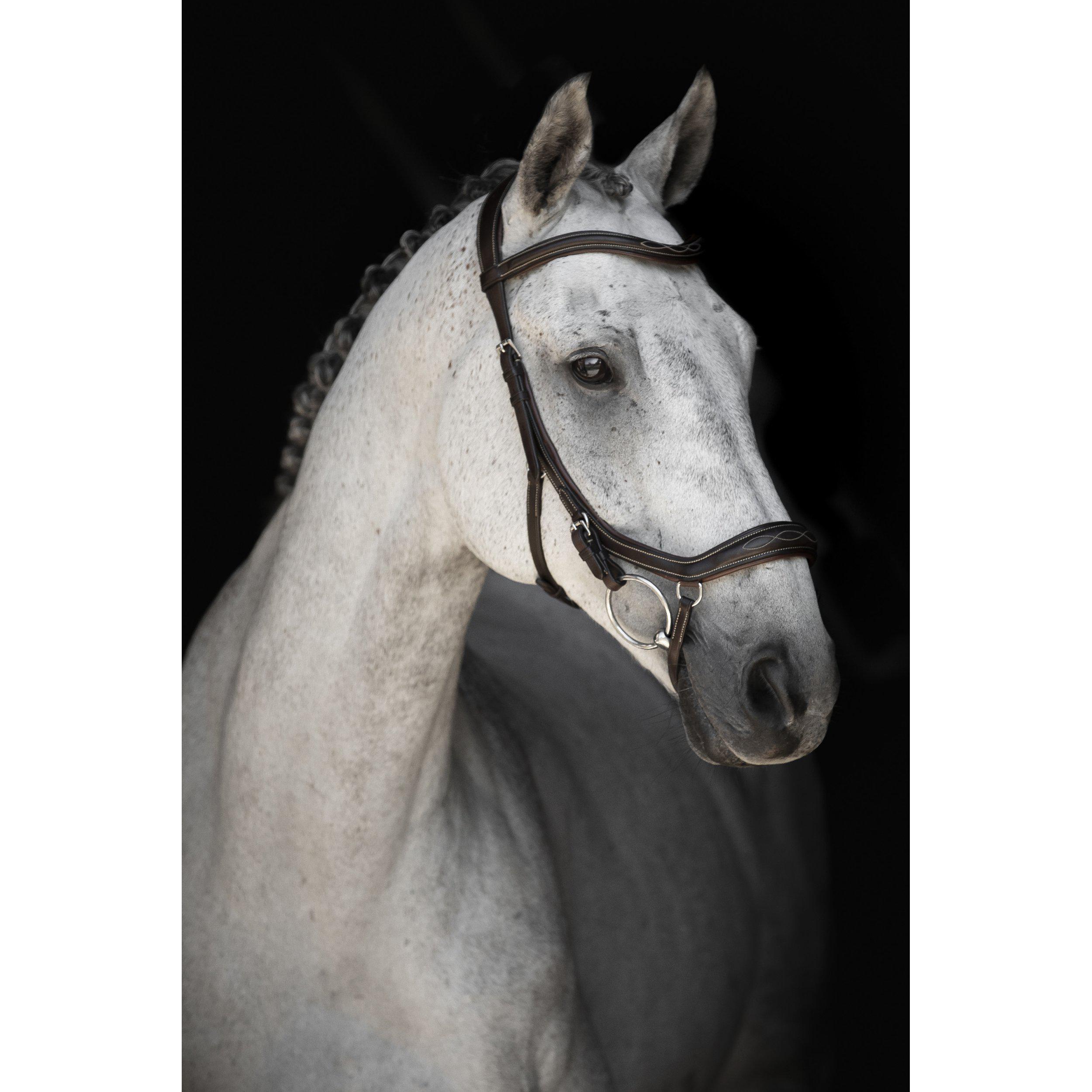 Träns i mjukt kvalitetsläder med silverfärgade spännen. Anatomiskt och fodrat nackstycke. Rostfria söljor.